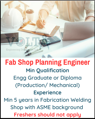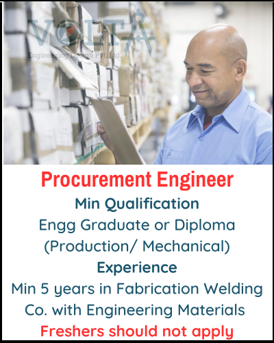 We are looking for experienced engineers for following open positions at Hyderabad (Office & Plant)